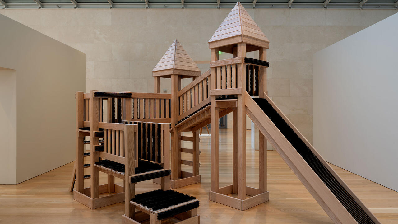 A ‘survey’ of his upbringing, the artist’s hometown exhibition at Dallas’s Nasher Sculpture Center reimagines cafeteria furniture and science-class skeletons