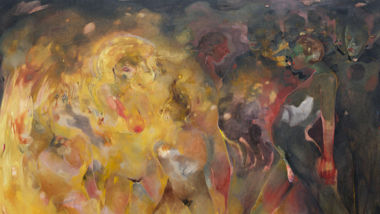 For ‘The Trompe l’oeil Cleavage’, Monster Chetwynd transformed the rooms of Kunsthaus Zürichinto a dramatically lit sequence of spaces inspired by accounts of the ancient Via Appia, the Roman thoroughfare that doubled as a burial ground. Set against the backdrop of sprawling wallpaper collages and dotted with sculptural structures of wood, cardboard, papier mâché and latex, the exhibition brings together a constellation of objects, paintings and films celebrating over two decades of the artist’s idiosyncratic practice. The result is evocative of a walk through the set of Federico Fellini’s Satyricon (1969) combined with remnants of a DIY session involving psychedelic substances. – Krzysztof Kościuczuk